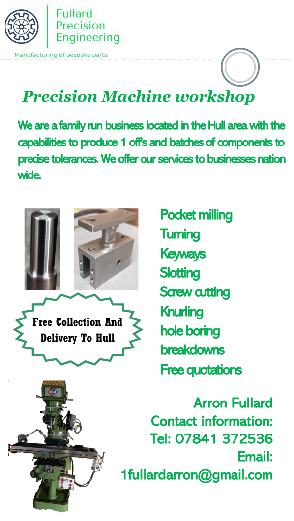 New engineering services are now available. Contact Arron Fullard: - 07841 372536.